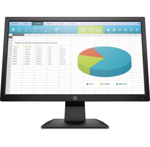Get essential presentation features and device connectivity with the stylishly redesigned and surprisingly cost-conscious HP P204 19.5-inch Monitor. Crisp image clarity for all your content Easily navigate your documents and spreadsheets on this sleek display that complements your modern workspace and has a 19.5-inch diagonal screen with 1600 x 900 resolution. Essential connectivity Quickly connect to your devices and additional displays through the HDMI and DisplayPort ™ connectors. Get legacy device compatibility from the VGA connector. Create an efficient workspace Attach your HP Desktop Mini, HP Chromebox or select HP Thin Client directly behind the display. 2 Keep things tidy with an integrated power supply and cable management features. KEY FEATURES Find your sweet spot Filte