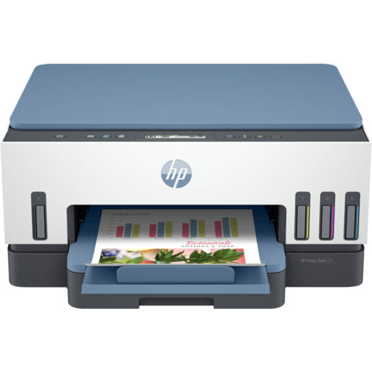 HP Smart Tank 725 All-In-One Printer, Print / Copy / Scan, Wireless Function, Up To 15ppm Print Speed, 1200 DPI, 250 Sheets Input Capacity, Wifi & Bluetooth Connectivity, White – Blue | 28B51A