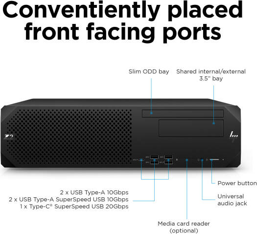 HP Z2 Small Form Factor G9 Workstation (SFF) Re-engineered to fit full-height, full-length graphics while leaving room for upgrades and expansion, the Z2 SFF delivers high performance for your intensive workflows while defying space constraints. Intel® Core™ i7 processor Run several CPU–heavy programs simultaneously without sacrificing performance with an Intel® Core™ i7 processor. Smaller, Functional Design The stunning new design features front and rear ledges, so you can easily move your system from location to location. Tool-less Access Evolve your work. Evolve your