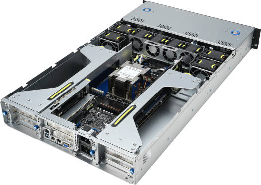 | Storage | Storage Controller: CPU Integrated Optional kits: ASUS PIKE II 3008 8-port SAS 12Gb/s HBA card ASUS PIKE II 3108 8-port SAS HW 12Gb/s RAID card Broadcom MegaRAID 9540-8i Broadcom MegaRAID 9560-16i Drive Bays: 2 x 2.5” & 4 x 3.5“ Hot-swap Storage Bays SKU1: 2 x 2.5” SATA/SAS*/NVMe + 2 x 3.5” SATA/SAS*/NVMe + 2 x 3.5” SATA/SAS* SKU2: Build to order 2 x 2.5” SATA/SAS*/NVMe + 4 x 3.5” SATA/SAS*/NVMe (Occupy 1 x PCIe x8 link ) Optional: 1 x M.2 with riser module *RAID card is required to support SAS hard drives For SKU1 additional 2 x NVMe support required a RAID card. |