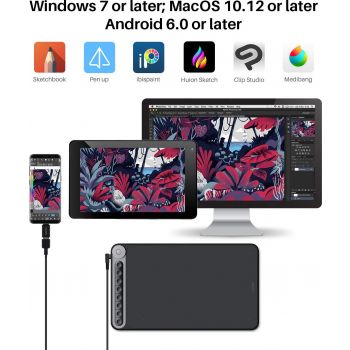 Description For Online Teaching&Working and Web Conference Use: Huion tablets are well compatible with office software like Microsoft Office Word, Excel, PowerPoint. It is ideal for online teaching, remote work, web conference, presentation, and so on. About the Dial Controller: Features of the Dial Controller will vary as the running program changes if Windows Radial features are activated. Connection Tips for Android Connection: Q620M only supports wireless connection with the android phones because the phone will reverse charge the tablet when they are wired connected and will quickly drain the phone battery. Your phone or tablet must be equipped with Android 6.0 or above and should have OTG function. It does not support iPhone or iPad. It only supports Windows, Mac OS, and Android OS.