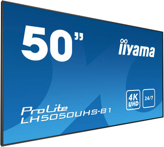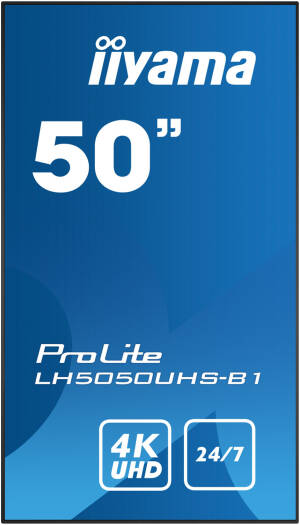 iiyama ProLite LH5050UHS-B1 Digital Signage, 50″ AMVA3 LED Display, 4K UHD Resolution, 60Hz Refresh Rate, 8ms (GtG) Response Time, 16.7m Color Support, 24 / 7 Operation Time, Black | LH5050UHS-B1