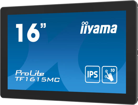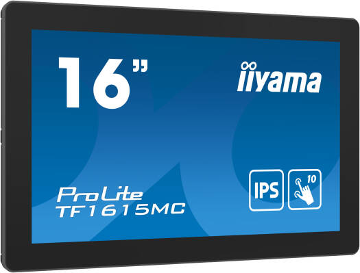 iiyama ProLite TF1615MC-B1 Open Frame Interactive Display, 16″ FHD IPS Display, Projective Capacitive Touch Technology, 10 Touch Points, 25ms (BtB) Response Time, Black | TF1615MC-B1