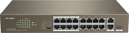 IP COM F1118P-16-150W 16FE+2GE/1SFP Unmanaged Switch, 6 kV lightning protection, With 16-Port PoE | F1118P-16-150W