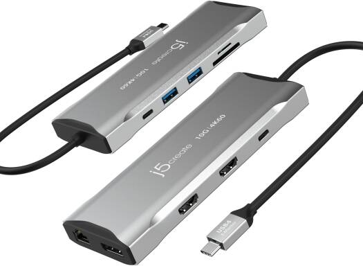 J5create 4K60 Elite USB-C 11-in-1 Triple-Monitor 10Gbps Mini Dock, 3x USB-C, 2x USB-A, 4K HDMI, DisplayPort, SD MicroSD Reader, RJ45 Gigabit Ethernet, Up to 10 Gbps Data Transfer Rate, Gray | JCD397