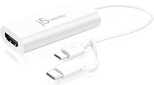 Android USB to HDMI Display Adapter The j5create Android USB™ Display Adapter acts as an external video card for your Android Mobile Phone. It allows you to add an additional monitor/display through your USB™ MicroB port or Type-C Port. Simply load the Google® Play app (“j5 Display Adapter” App), plug the adapter into the USB™ Micro-B port or Type-C port, then plug the VGA or HDMI™ monitor cable into the adapter and you are ready. With “Plug & Play” functionality between your Android™ mobile phone and 2nd monitor, you will be able to create a new visual environment in seconds. Specifications Interface Host Interface
