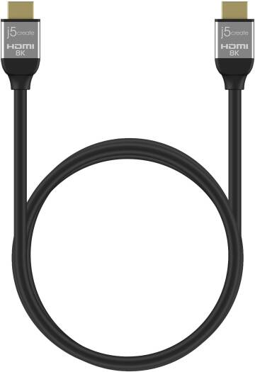 J5create Ultra High Speed HDMI Cable, HDMI Male to HDMI Male Interface, Up to 60 Hz @ 7860 x 4320 Resolution, 48 Gbps Data Transfer Rate, Gold-Plated Connector, 2m Cable Length, Black | JDC53