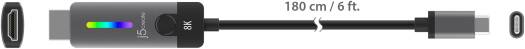 J5create USB-C to HDMI 2.1 8K Cable, USB-C Male to HDMI Male Connectors, Up to 7680 4320 @ 60 Hz Resolution, Aluminum / Plastic Material, 1.8m Cable Length, Black/Gray | JCC157