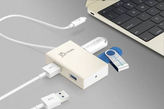 About This Product • Compatible with USB 3.1 Gen 1 and data rate up to 5 Gbps. • USB 3.0 Super Speed, 10 times faster transfer rate. • Backwards compatible with USB 3.0/2.0/1.1 specifications • Adds four USB 3.0 ports to your Macbook, Chromebook, or other laptop computers with a single USB plug • Plug-and-play and hot-swap compatible • Elegant aluminum housing The JCH343 USB Type-C 4-Port HUB allows up to four USB 3.0 devices to be connected simultaneously at a transmission speed of 5 Gbps, while still providing connectivity and support for the older USB 2.0 (480 Mbps) and 1.1 (12 Mbps) devices. The JCH343 works with high bandwidth SuperSpeed USB 3.0 devices, such as external USB 3.0 disk drives, high-resolution webcams, video surveillance cameras, digital video cameras and more. It is perfec