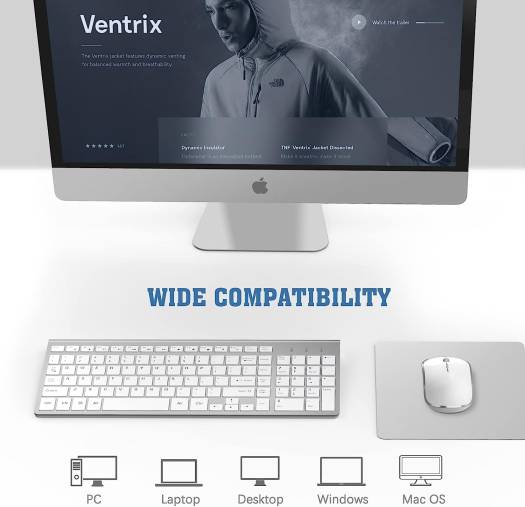 Joyaccess Wireless Keyboard and Mouse Combo Rechargeable J JOYACCESS 2.4G Ergonomic and Slim Quiet Click Compact Designed for Windows, PC, Laptop, Tablet, Silver |