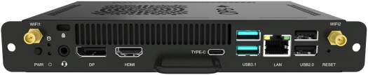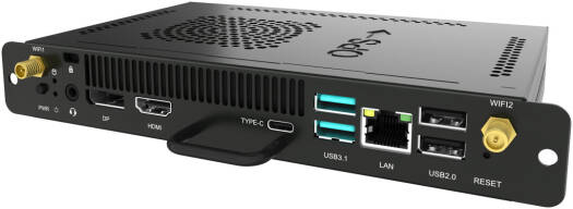 S104CPLUS Standard OPS PC Module Powered by the Intel Raptor Lake-P platform, this device utilizes Intel Iris Xe Graphics to deliver exceptional performance. It adheres to the OPS (Open Pluggable Specification) standards, ensuring easy installation, upgrades, and maintenance. Ideal for applications in conferencing, education, and digital signage Specifications CPU Intel® Core™ i5-1240P Processor with vPro™ (E-Core Max 3.30 GHz, P-Core Max 4.40 GHz with Turbo Boost, 12 Cores, 16 Threads, 12 MB Cache) <