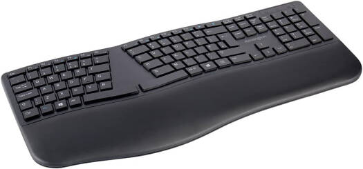 Pro Fit Ergo The split and slope keyboard design positions your hands for improved comfort and the built-in wrist rest supports and cushions the wrists, reducing the risk of RSI or Carpal Tunnel