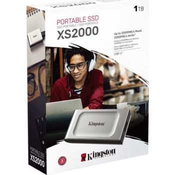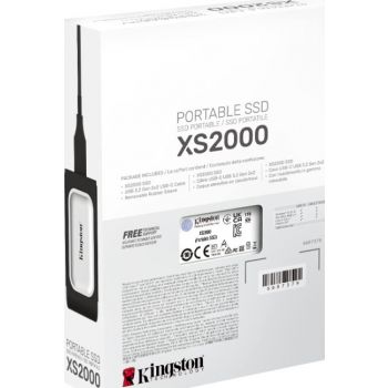 XS2000 External Solid State Drive (SSD) USB Type-C 3.2 Gen 2×2 Portable Drive Kingston’s XS2000 Portable SSD utilises USB 3.2 Gen 2×2 speeds to deliver next-gen performance in a compact, external drive. With lightning-fast transfer speeds of up to 2,000MB/s 1 , XS2000 delivers enhanced productivity with little interruption. XS2000 offers high-speed storage options of up to 2TB 2 for offloading and editing high-res images, 8K videos and large documents in a flash. The drive is future-proofed to keep up with storage demands and compatible with most devices out of the box. It functions just like a hard drive but stores data using NAND flash technology. It connects with USB Type-C, allowing content creators to access their data anywhere on a PC or mobile device. Whether you go between work, play and passion projects, the XS2000 includes a removable ruggedised sleeve and IP55 rating to withstand water and dust, making it the perfect companion for