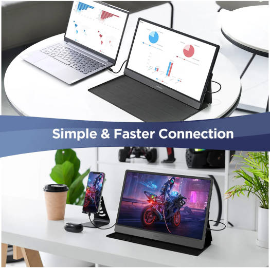 Koorui 15B1 15.6″ IPS FHD Portable Monitor, Retina Display, 60Hz Refresh Rate, 5ms Response Time, 16 9 Aspect Ratio, Built-In Dual Speaker, Type-C & Mini HDMI Inputs, Black | 15B1