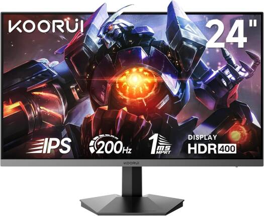 KOORUI G2411P Gaming Monitor, 24″ IPS Display, FHD Resolution, 200Hz Refresh Rate, 1ms (MPRT) Response Time, AMD FreeSync Premium Technology, 16.7m Color Display, Black | G2411P