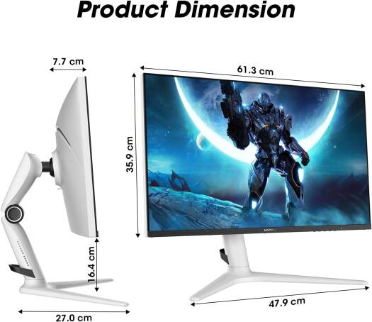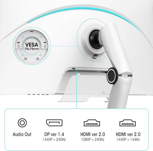 GN10 Key Features Mini LED Local Dimming : White Gaming Monitor features Mini-LED with 384 Local Dimming Zones, which can achieve 550cd/㎡ peak brightness, a higher dynamic range (HDR1000) and a higher static contrast ratio(200000:1), so that the monitor can restore the deepest blacks and brightest whites. The color is more natural and vivid and the visual fidelity of the best immersive experience. Excellent Gaming Experience : 240Hz refresh rate and 1ms (GtG) response time make the previous ghosting no longer stay on the gaming monitor 1440p, thus reducing the blurring of the edges of fast-moving objects and bringing you an immersive gaming experience. Extreme Color presentation : 1000nits(HDR) brightness, 100%sRGB, 99%Adobe RGB and 200000:1 outstanding ultra-high contrast ratio static bring the images closer to the human eye, the images are clearer and more dark details can be seen, taking the quality to a higher level. Ergonomic Design : You can adjust the height:130mm, tilt:-7~30°, left/right: ±20°, and rotate: ±90° to customize