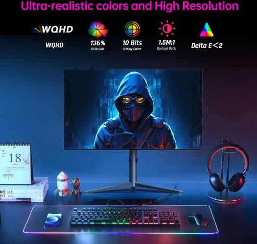 G27P6 240Hz Refresh Rate Speeds up Your Game in a Flash The KTC G27P6 supports HDMI 2.0, which means a higher resolution, refresh rate and bandwidth, leading to improved picture clarity. It also supports High Dynamic Range (HDR), presenting crisper images and more fluid videos. With a 240Hz refresh rate and 0.03ms GTG response time, the gaming monitor effectively reduces motion blur and makes the action look smoother. Precise mouse movements and quick response make a difference in playing fast-paced games and help to boost your gaming performance. Compatible with FreeSync and G-Sync, it avoids screen tearing and stuttering for a fantastic gaming experience. OLED Panel for Stunning Colors and Images The OLED panel offers you superior viewing angles, better image quality, flexible displays, high brightness and contrast and a fast response time. With a 2560×1440 resolution, this 27-inch gaming monitor presents a high-quality, crisp image. The 10-bit panel has 100% of the DCI-P3 color gamut and 136% of the sRGB color gamut and can display 1.07 billion colors. With a high resolution and a wide color gamut, it delivers more lifelike pictures and provides you with immersive experiences. SKU: SKU-65DEEE1F Category: Monitors Brand: KTC