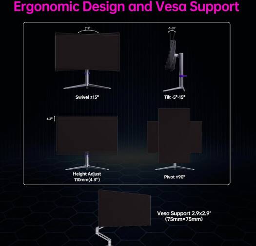 | Pivot | ±90° (Horizontal/Vertical) |