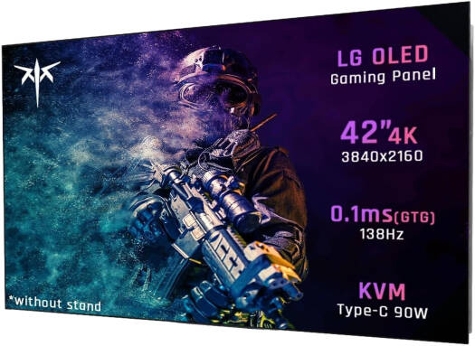 G42P5 NEW LG OLED GAMING PANEL : 42″ LGD (3840 x 2160) 4K Gaming Monitor OLED Display with 8.29 million self-lif pixels, four-sides bezel-less and nano-texture glass screen, adpot anti-burn-in technology protect screen, create endless immersive experience. BOOST YOUR GAMEPLAY : 138Hz High Refresh Rate, 0.1ms (GTG) Response Time, Supports FreeSync Premium & G-Sync Compatible, Blue Light Shift save your eyes, and metal stand with RGB light matches the white monitor, fuel your gaming. TYPE-C PD 90W REVERSE CHARGING : Not only HDMI2.1×2, DP1.4×1, USB3.0×3, G42P5 also has a type-C hub for advancing your gaming, design, and entertainment experience. SEE THE REAL BLACKS AND WHITES : Present perfect color with 10Bit display color, 110% DCI-P3 / 111% sRGB color gamut, color accuracy △E<2, 600 cd/m2 HDR Brightness, 135000:1 Contrast Ratio, (High-Dynamic Range)HDR10 support on this 4k OLED monitor. MORE SURPRISES : This OLED gaming monitor support KVM, support 100×100mm vesa, there is more possibilities to explore. And 2×8W built-in speakers and remote control create the new era of ci