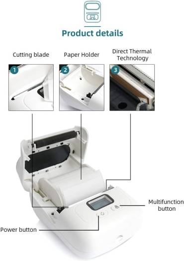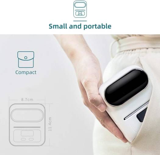 specification: Product name: Bluetooth portable printer Purpose: label printing Product size: 132 * 76 * 29mm Net weight: 220g Power supply: 1500mAh Battery type: lithium battery Standby time: about 100 days Charging method: USB Print media: thermal paper Printing method: thermal printing Cutting method: manual Printing color: black/white Printing specifications: 20-50mm Printing thickness: 0.05-0.15mm Printing accuracy: 203dpi Data transmission: Bluetooth 4.0 connection Font settings: support Network printing: support Automatic duplex printing: not supported Print content: text, graphics, symbols, one-dimensional code, two-dimensional code Applicable system: support Android 4.0 and IOS 8.0 system and higher