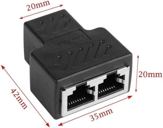 Splitter Design: 1 RJ45 In and 2 RJ45 female OutDimension : 4cm x 3.5cm x 2cm ( L x W x H )Convert a single RJ45 outlet to two RJ45 sockets easilyAttention: This Ethernet splitter allows two computers to share one Ethernet line, but it doesn't support both computers to connect onto the internet simultaneously.Package includes:1 X 1 To 2 Ways RJ45 Female Splitter Connector Adapter