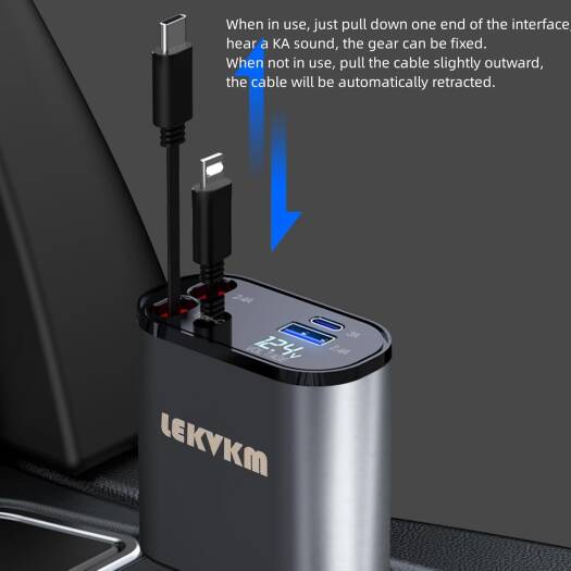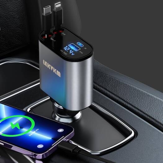 LEKVKM Fast Car Charger 4 Ports Car Charger Adapter Fast Charging Car Cigarette Lighter Plug for iPhone Type-C+iPhone, Samsung, Huawei