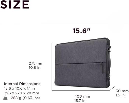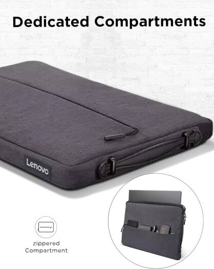 15.6-inch Laptop Urban Sleeve The Lenovo Urban Sleeve Case is a quality storage solution fit for any style-conscious on-the-go professional. Store your laptop, power bank, mouse, and other accessories securely inside the many sleeves and compartments. Keep them safe from the unexpected with a water-resistant polyester exterior and padded internal compartments. Key Feature Protective design that’s armored with rubber bumpers on each corner to keep your laptop safe from accidental drops Water-resistant and stylish polyester outer material for durability Cushioned under zippers to protect from scratches Additional zipper storage for accessories