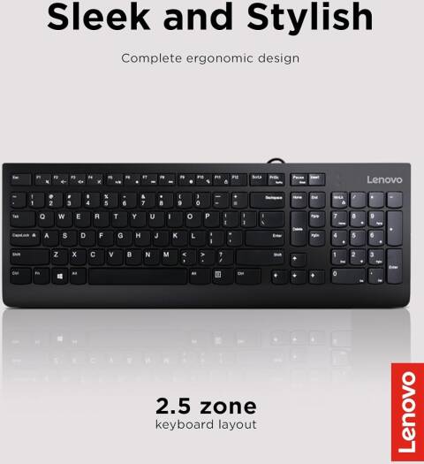 Lenovo 300 USB Wired Keyboard, Ergonomic Design, Tilt Adjustable , Island Key Design with English (US) Layout Layout and Separate Number Pad , Windows 7/8/10, Black | GX30M39655