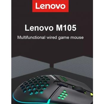 Lenovo M105 Wired Colorful Light Gaming Mouse, 3200 Dpi Resolution, 1.6m Cable Length, USB Interface, Ergonomic, Black | M105