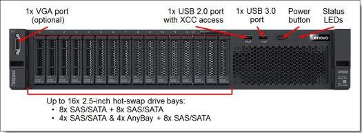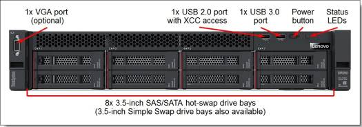 Introduction Lenovo ThinkSystem SR590 is a 2-socket 2U rack server for small businesses up to large enterprises that need industry-leading reliability, management, and security, as well as balancing performance and expandability. The SR590 server is designed to handle a wide range of workloads, such as virtualization and cloud computing, IT infrastructure, enterprise applications, collaboration/email, and web serving. Featuring the second generation of the Intel Xeon Processor Scalable Family (Xeon SP Gen 2), the SR590 server offers balanced performance, storage capacity, and I/O expansion. The SR590 server supports up to two processors, up to 2933 MHz memory speed, up to 1 TB of memory capacity with TruDDR4 RDIMMs or up to 2.75 TB of memory capacity with a combination of TruDDR4 RDIMMs and Intel DC persistent memory modules (DCPMMs), up to 16x 2.5-inch or 14x 3.5-inch drive bays with an extensive choice of NVMe PCIe SSDs, SAS/SATA SSDs, and SAS/SATA HDDs, and flexible I/O expansion options with a LOM slot and up to 6x PCIe slots. The SR590 server offers basic software RAID or advanced hardware RAID protection and a wide range of networking options, including selectable LOM, ML2, and PCIe network adapters. The next-generation Lenovo XClarity Controller, which is built into the SR590 server, provides advanced service processor control, monitoring, an