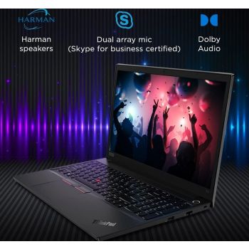 Whether you need to join a conference call or groove to some serious tunes, the ThinkPad E15 Gen 2 laptop has you covered with the option of the integrated Versa Tray. No need to search for a headset or untangle wires—simply open the tray and Bluetooth enabled earbuds auto-connect to your PC. Enjoy more than two hours of uninterrupted phone calls. Dual mics provide environmental noise cancellation to make meetings even more productive. AI-based noise cancellation in the embedded microphone enhances meetings on your ThinkPad E15 Gen 2 laptop. Choose between predefined modes for seamless conferencing—whether on the go or working remotely in your home office. And with the low blue-light mode, you can work comfortably for longer.