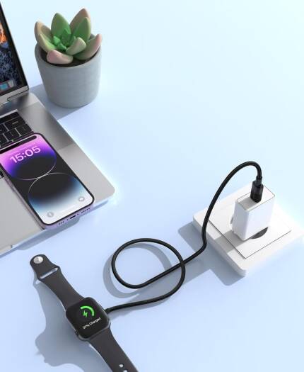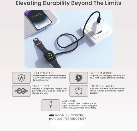 Levelo Otto Type C Compatible With Apple Watch Wireless Charger Cable,Fast Charging,1.2M Cable,Heat Resistant,Tangle-Free,Saffiano Leather,Plug & Char