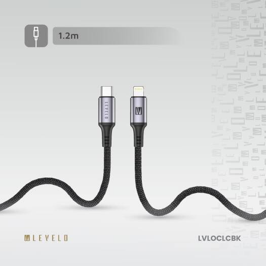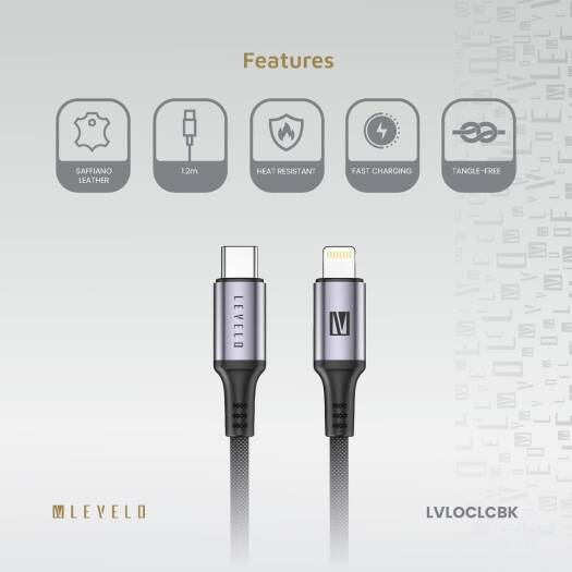 Levelo Otto USB C to Lightning Head 30W Leather Cable,Fast Charging,1.2M Cable,Heat Resistant,Tangle-Free,Saffiano Leather,480Mbps Transfer Speed,Charge & Sync – Black