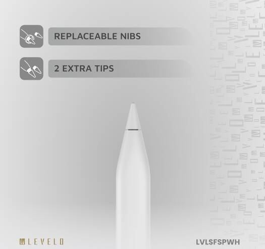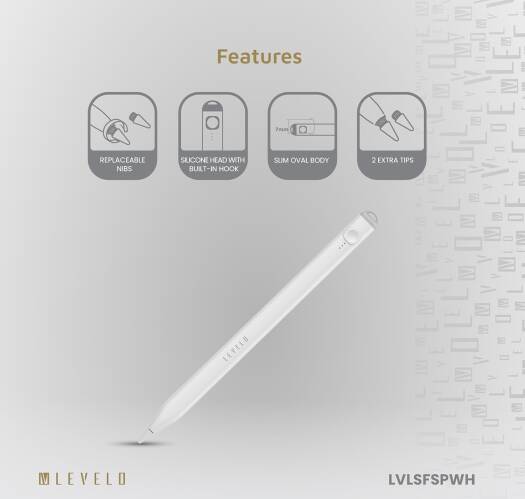 The Levelo SKYFLEX Stylus Pen is a high-precision tool designed specifically Compatible With iPad users, combining functionality with sleek design. This stylus pen features replaceable nibs and a silicone head that ensures smooth and accurate writing or drawing on your device screen. The built-in hook adds convenience, allowing you to easily attach it to your tablet or case, keeping it always within reach. With palm rejection technology, the Levelo SKYFLEX allows for a natural writing experience, letting you rest your hand on the screen without interfering with your work. The pens slim oval body is comfortable to hold, providing an ergonomic grip that reduces hand fatigue during extended use. It includes 2 extra tips, ensuring that you have backups readily available. Featuring a 6-month standby and 8-hour working time on a full charge, this stylus is always ready for creativity on the go. The tilt sensitivity function allows for varying stroke thickness, ideal for artists and note-takers. Available in a stylish white color, the Levelo SKYFLEX Stylus Pen combines versatility and performance in a compact, portable design.