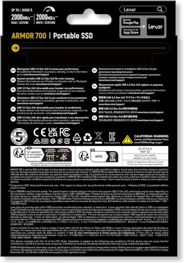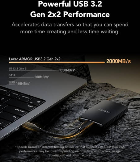 Lexar 2TB Armor 700 Portable SSD, Up to 2000MB/s, USB 3.2 Gen 2×2, Rugged, IP66 Water & Dust Resistance, Compatible w/iPhone 15, Cameras, Gaming Conso