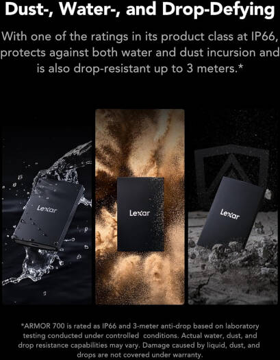 Lexar 2TB Armor 700 Portable SSD, Up to 2000MB/s, USB 3.2 Gen 2×2, Rugged, IP66 Water & Dust Resistance, Compatible w/iPhone 15, Cameras, Gaming Consoles, External SSD, Black | LAR700X002T-RNBNG