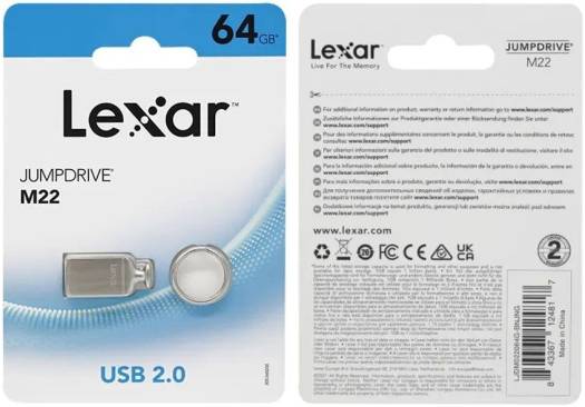 Lexar JumpDrive M22 USB Flash Drive, Key Chain Hole, 64GB Capacity, USB 2.0 Version, Compact Design, PC & Mac Compatible, Metal Body, Silver | LJDM022064G-BNJNG