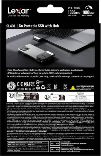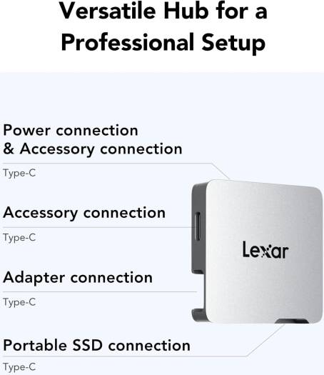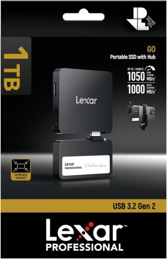 Lexar Professional Go Portable SSD with Hub, SL400, 1TB, Black, GL