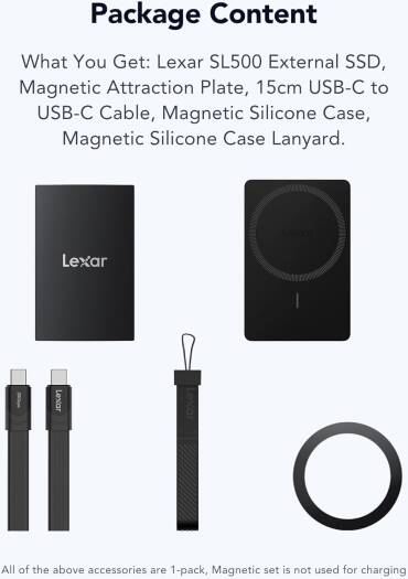Lexar SL500M 1TB External SSD with Magnetic Set, USB 3.2 Gen2x2 Portable SSD, up to 2000MB/s Read, Compact External Solid State Drive, Ultra Slim Compatible with iPhone 15
