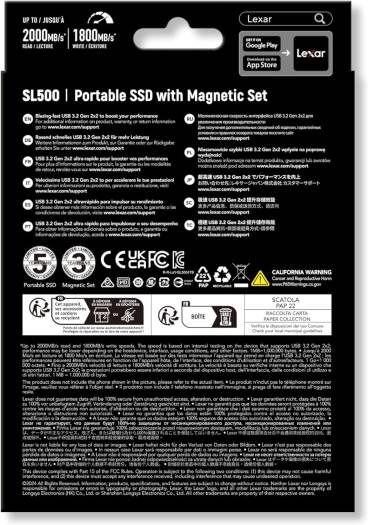 Lexar SL500M 1TB External SSD with Magnetic Set, USB 3.2 Gen2x2 Portable SSD, up to 2000MB/s Read, Compact External Solid State Drive, Ultra Slim Comp