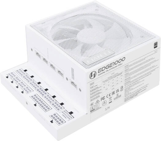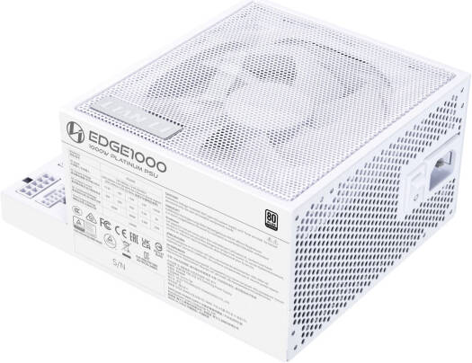 Lian-Li Edge L-Shape Fully Modular Power Supply, 1000W Power, 80 Plus Platinum Certification, 120mm FDB Fan, ATX 3.0 & 3.1 Compliant, PCIe 5.1 Support, Active PFC, White | G9P.EG1000.WE00.UK