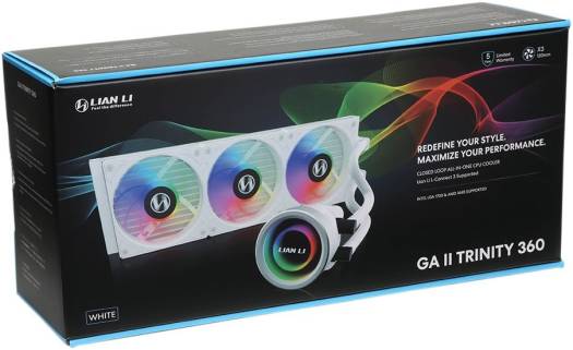 Lian Li Galahad II Trinity 360 AIO CPU Cooler, ARGB PWM, 3 Fan Slots (120 mm), 2450 RPM Fan Speed, Fluid Dynamic Bearing, 79.9 CFM Airflow, 360mm Radiator Size, White | G89.GA2T36W.00