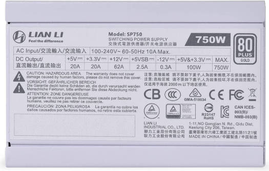 SP750 SFX MODULAR 80 PLUS GOLD POWER SUPPLY Introducing the latest small form factor PSU, the Lian Li SP750 SFX Power Supply. Despite its small dimensions, this SFX PSU can supply your gaming PC with up to 750W. Boasting an 80 PLUS Gold rating, this operates with 89% efficiency, keeping your PC powered and your energy bills low. Modular in design, components can be connected via the included braided cables for sleek management and an overall tidier appearance. Perfect for small builds, the Lian Li SP750 is kept at optimum temperatures thanks to the integrated fan with hydraulic bearings, which features a Silent 0RPM Mode. Sleek, stylish, and modern, this is the SFX PSU for powering hungry components in a small build. THE FEATURES OF LIAN LI SP750 SFX POWER SUPPLY AT A GLANCE: Small form factor SFX power supply, perfect for small builds 80 PLUS Gold rating with 89% energy efficiency Fully modular power supply with high-quality braided cables Integrated fan with hydraulic bearing and 0RPM mode for silent operation below 40% l
