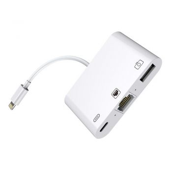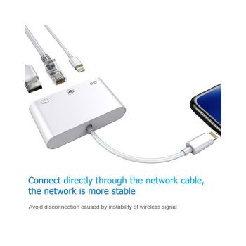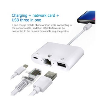 Lighting to Ethernet Camera Adapter NK-107 – 3 In 1 Ethernet + USB + 8 Pin Charging Female Ports To 8 Pin Male OTG Digital Video Converter | NK-107