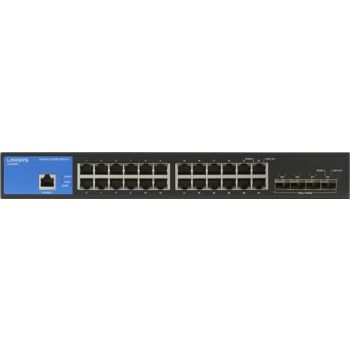 Linksys 24-Port Managed Gigabit Ethernet Switch, With 4 10G SFP + Uplinks, 512MB Memory, 95.23 Mpps Forwarding Rate, 128 Gbps Capacity, Static Routing, IPv4, 256 Active VLANs, Black | LGS328CEU