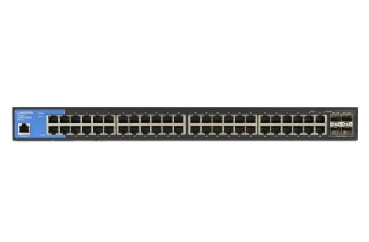 Linksys 48-Port Gigabit Switch, 10G SFP+ Uplinks (4), TAA Compliant, VLAN Tagging, 176 Gbps Switching, Static Routing, Black | LGS352C