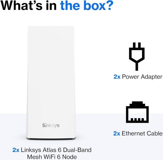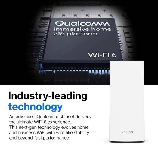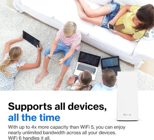 Linksys Atlas 6 mesh WiFi router brings the reliability and speed of WiFi 6, at an incredibly affordable price. This dual-band AX3000 mesh wireless router accesses 160 MHz channels for more powerful and stable connections, supporting speeds up to 3.0 Gbps. Linksyss Intelligent Mesh Technology means this WiFi 6 router can grow with you, simply add more routers to expand coverage for stronger connections to more devices. Covering up to 4,000 sq ft, and supporting 50+ devices, your entire family can stream, game, and video chat without interruption all from the same WiFi mesh network.The Linksys Atlas 6 mesh WiFi system can blanket your entire home from the garage to the backyard guest house without needing a WiFi extender or WiFi booster. An advanced Qualcomm chipset brings industry-leading technology, transforming home and business WiFi with wire-like stability, and up to 4x more capacity.Linksys WiFi mesh wireless routers are Life Tested to deliver the reliability, compatibility, and connectivity you expect. Our products pass 25 real-world tests in The Linksys Life Lab, and are backed by an Amazon exclusive 3.5 year warranty, and have 24/7 tech support
