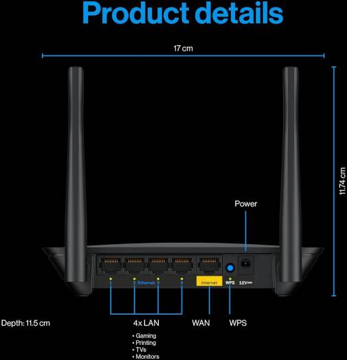 Linksys LN3101 AC1200 Dual Band WiFi 5 Router, Up to 1.2Gbps WiFi Speed,1,500 Sq. ft Coverage, 20+ Devices, Ultra-low Latency for Lag-free Gaming, Black | LN3101
