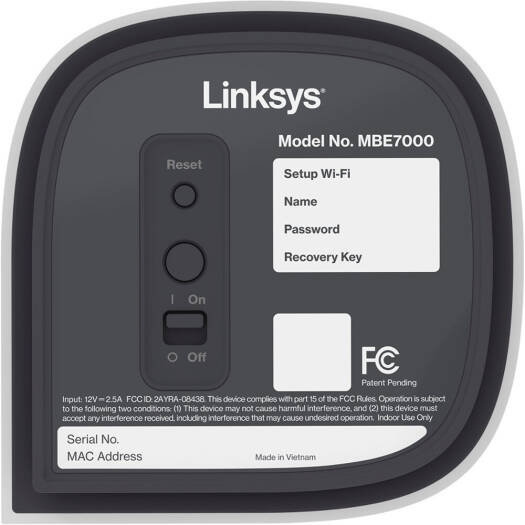 Linksys Velop Pro 7 Tri-Band Mesh WiFi 7 Router, 1.5GHz Quad Core, Up To 240MHz Channel Bandwidth In 5 GHz, Cognitive Mesh With 6GHz Band Access, 2.5Gbps Internet Port, 4xGbps Port, White | MBE7001