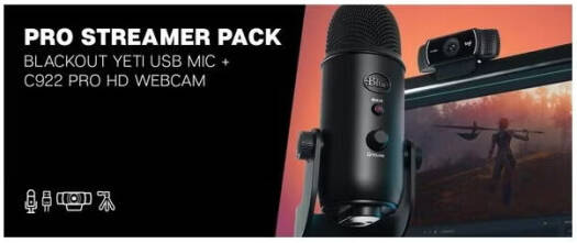 The Pro Streamer Pack includes the Blue Yeti USB microphone and Logitech C922 Pro HD webcam to give you the magic combination of Blueaudio and Logitech video for professional-level gaming, streaming, podcasting, YouTube videos and more. With broadcast-quality sound and vibrant HD 1080p video, the Pro Streamer Pack delivers the ultimate streaming experience.